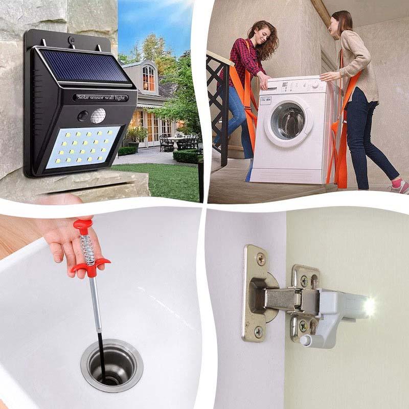 Вуличний світильник оснащений вбудованим акумулятором і сонячною батареєю, його можна використовувати для освітлення простору як усередині будинку, так і території зовні. Датчик руху реагує в темний час доби на відстані 4-х метрів. Ремені для перенесення меблів дозволяють значно легше і швидше пересувати великогабаритні і важкі вантажі, що дасть можливість заощадити свої сили, здоров’я та час.