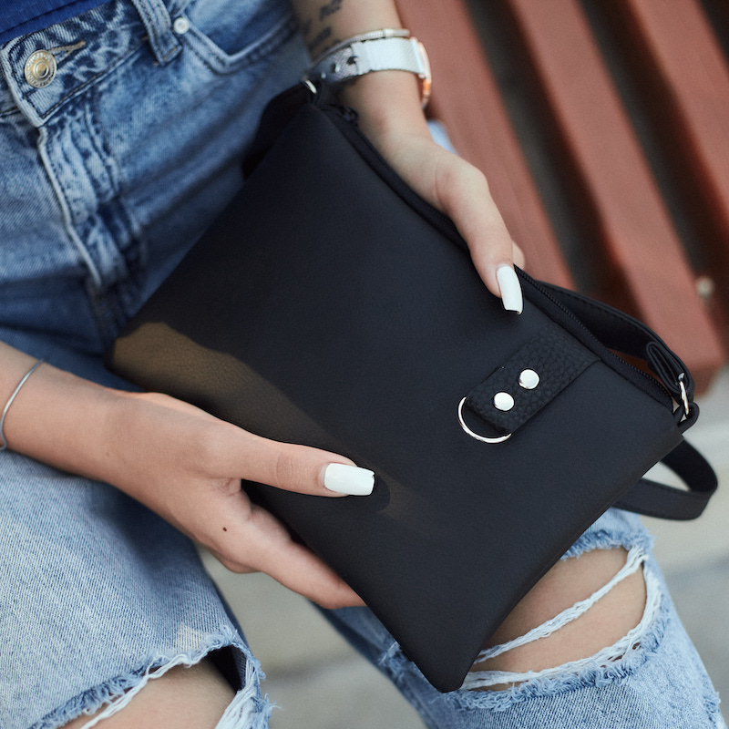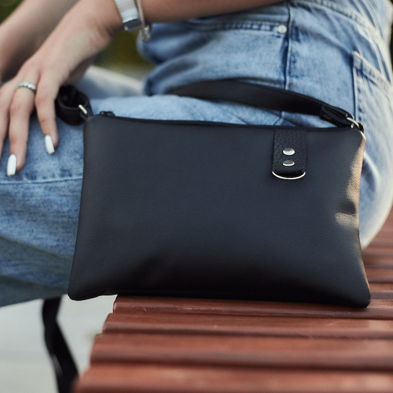 Сумка виконана з м’якої екошкіри, якісна і приємна на дотик, забезпечена подовженим ремінцем, що дає можливість зручно носити її як у руці, так і через плече. Мінімалізм та вишуканість модниці – ось образ, який створює ця сумка.