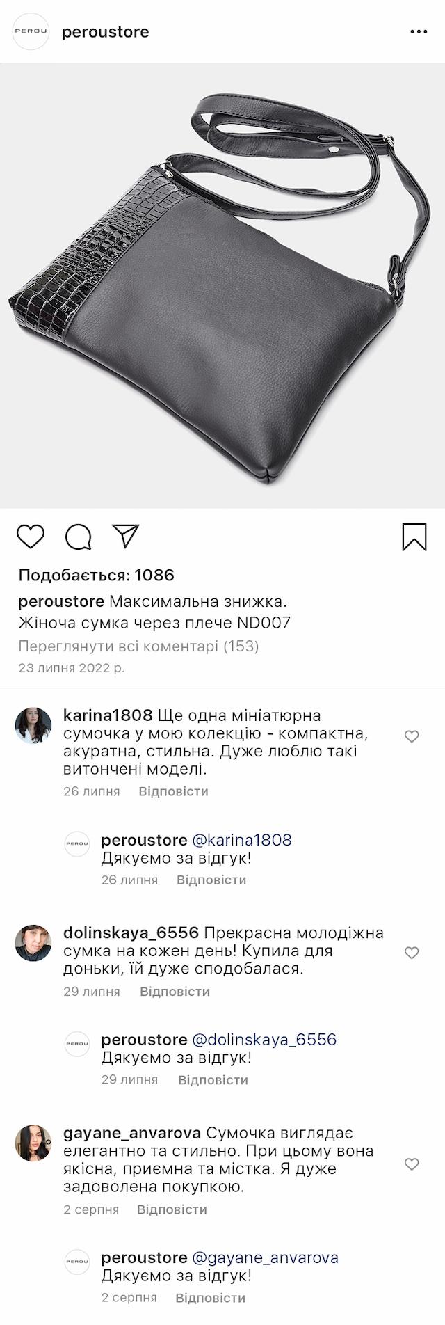 Сумку зручно носити через плече на міцному подовженому ремінці. Вона забезпечена блискавкою та якісною нікельованою фурнітурою, яка не потемніє та збереже свій вигляд. Стриманий дизайн без яскравих деталей довго буде актуальним та ідеально доповнить модний образ.