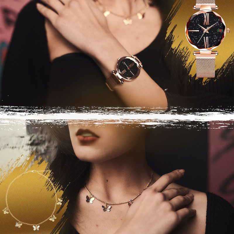 Жіночий наручний годинник зоряного неба – витончений аксесуар та відмінне доповнення до стильного образу. Корпус виконаний із міцних високоякісних матеріалів та ударостійкого скла, що забезпечує довговічність виробу. Кварцовий механізм гарантує точність відстеження часу.